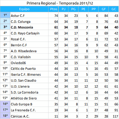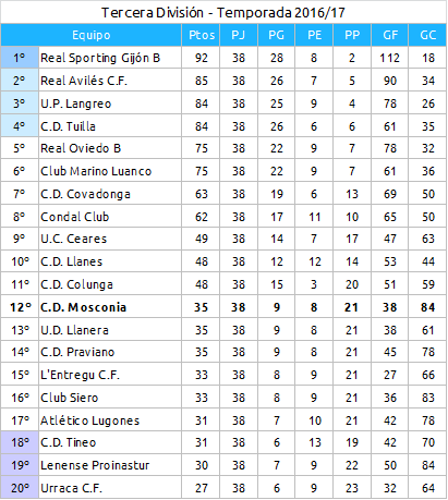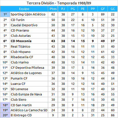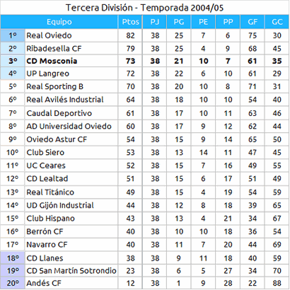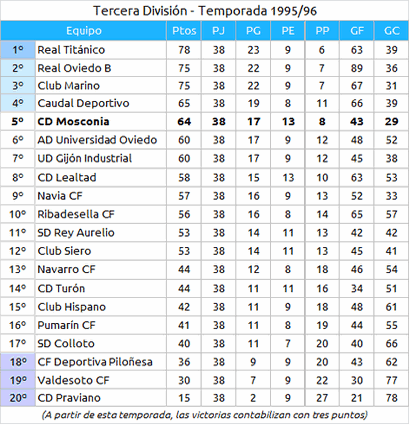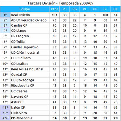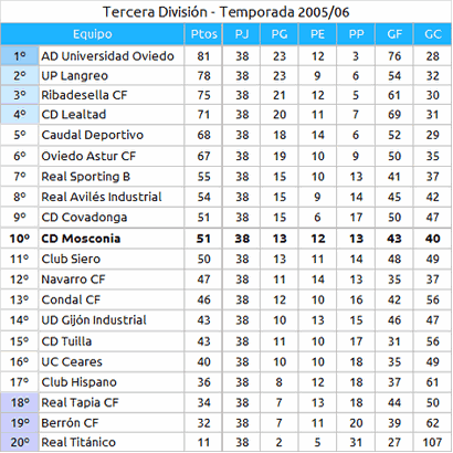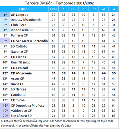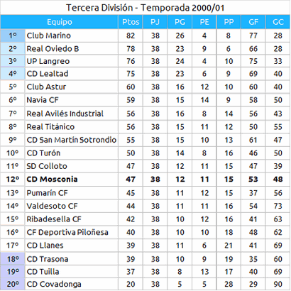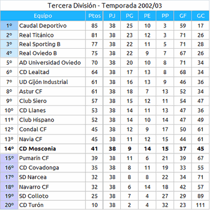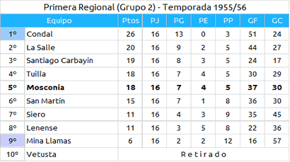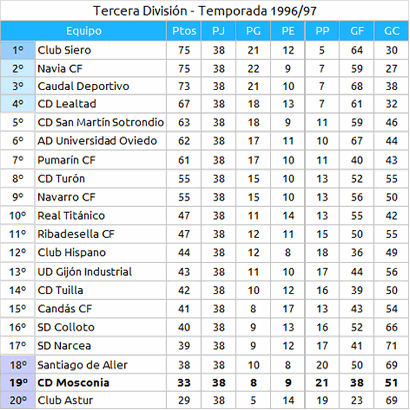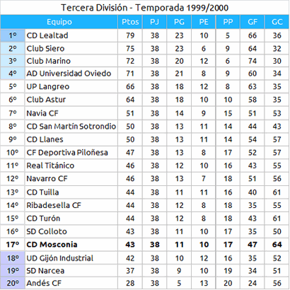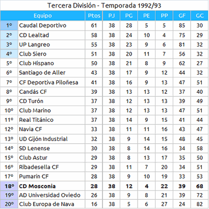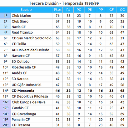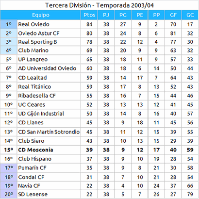 En su paso por la categoría de bronce del fútbol nacional, el Mosconia pagó su bisońez acabando último en un grupo en el que compitió con primeros equipos de capital de provincia como era el caso del Salamanca, Lugo, Ourense, Leonesa, Pontevedra, Numancia, Palencia o Avila.
