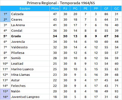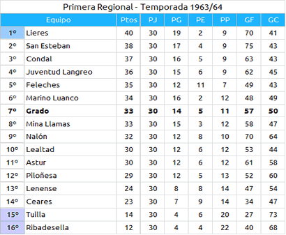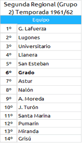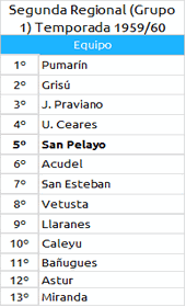 En 1958, el Mosconia desaparece y es reemplazado por el San Pelayo Fútbol Club, equipo que militará en Segunda Regional durante dos temporadas. El San Pelayo desaparece en 1960 y en su lugar surge el Grado Fútbol Club, que en la temporada 1961/62 compite en Segunda Regional. En esta categoría permanecerá dos campańas, pasando a militar en Primera Regional las dos temporadas siguientes.