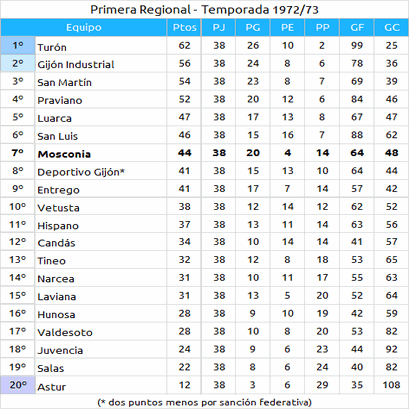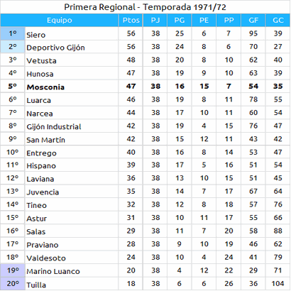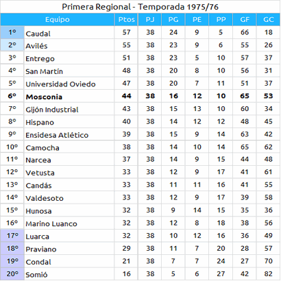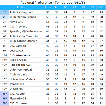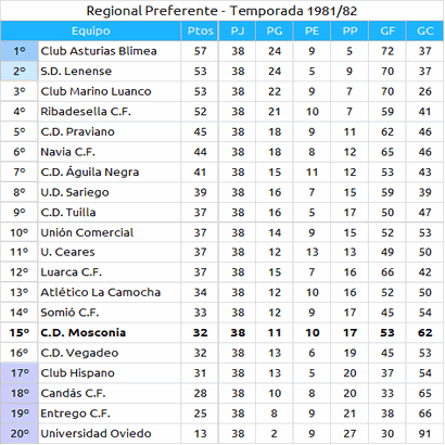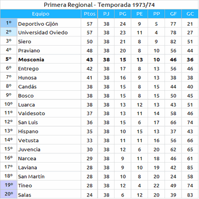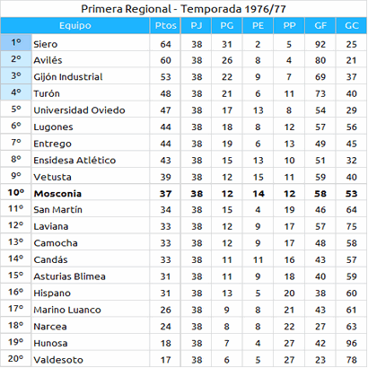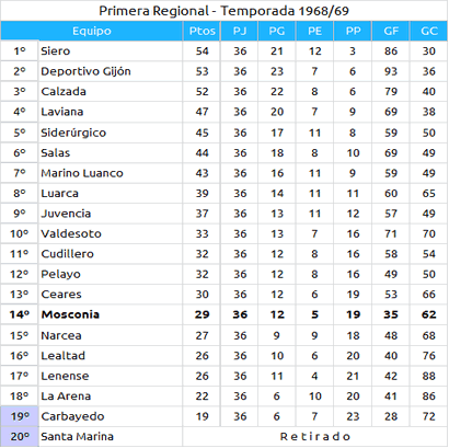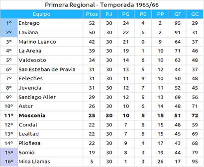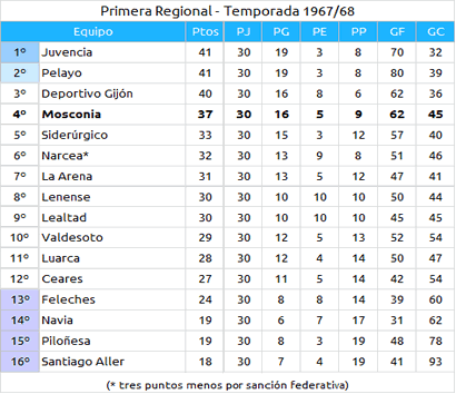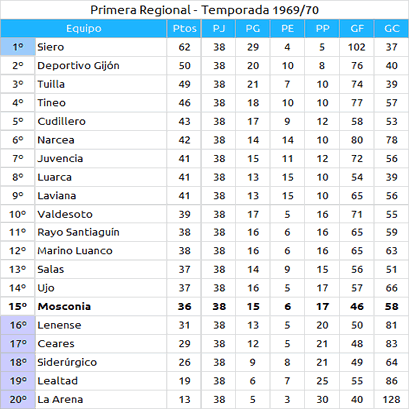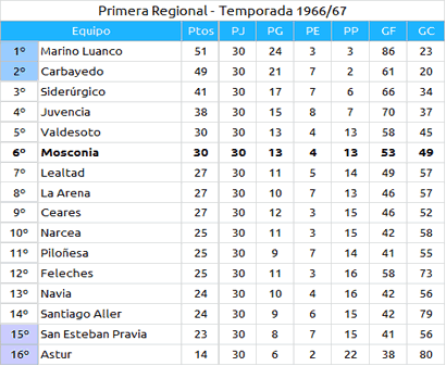 En 1965 el Mosconia recupera su nombre y a partir de esta fecha se consolida como uno de los equipos con más solera de la Primera Regional asturiana. En esta categoría permanece ininterrumpidamente durante las siguientes trece temporadas.