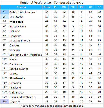 La temporada 1978/79 se inicia con cambios en la organización de las categorías regionales. Surge la Regional Preferente tal y como se entiende hoy en día (la hasta ahora Primera Regional). La nueva Primera Regional pasa a ser la heredera de la anterior Segunda Regional Preferente y los cuatro grupos de Segunda Regional se siguen conservando con esa denominación. En esta nueva Regional Preferente permanecerá el Mosconia durante las próximas cinco temporadas.